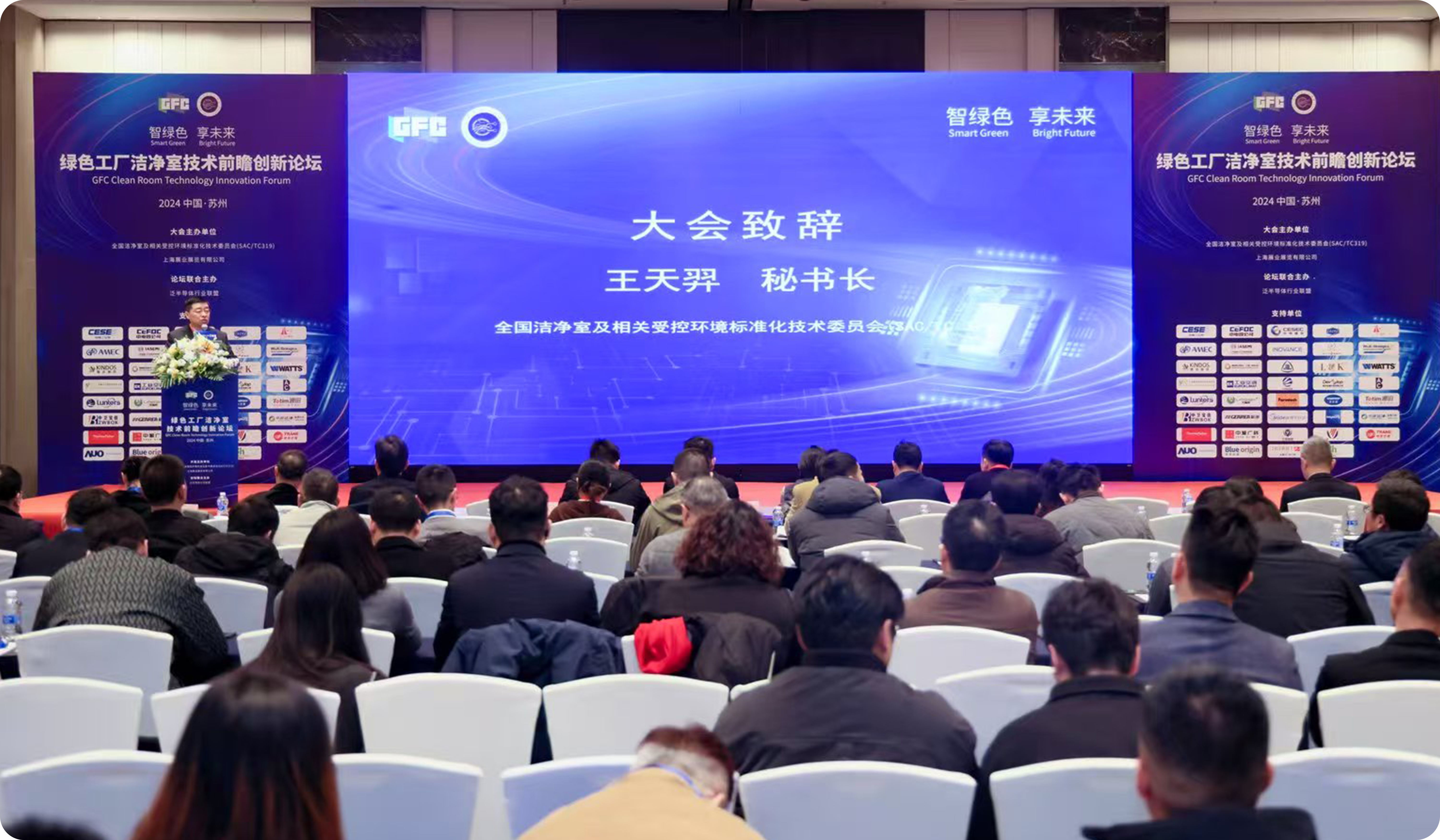 大會(huì)首日,在半導(dǎo)體潔凈室低碳節(jié)能技術(shù)發(fā)展論壇上,全國(guó)潔凈室及相關(guān)受控環(huán)境標(biāo)準(zhǔn)化技術(shù)委員會(huì)秘書長(zhǎng)王天羿發(fā)表致辭,他說:“潔凈室技術(shù)是高端精密制造業(yè)的核心技術(shù)基礎(chǔ),在實(shí)現(xiàn)綠色低碳發(fā)展中起到了至關(guān)重要的作用。潔凈室技術(shù)的演進(jìn)不僅是對(duì)高潔凈度環(huán)境的追求,更涉及到節(jié)能減排、智能化管理、模塊化建造等多個(gè)方面的創(chuàng)新。隨著半導(dǎo)體行業(yè)的需求迭代,半導(dǎo)體潔凈室的設(shè)計(jì)、施工、運(yùn)行面臨著一定挑戰(zhàn)。”王秘書長(zhǎng)對(duì)潔凈室行業(yè)發(fā)展的前瞻研判,給每個(gè)參會(huì)企業(yè)都帶來了深刻思考。
